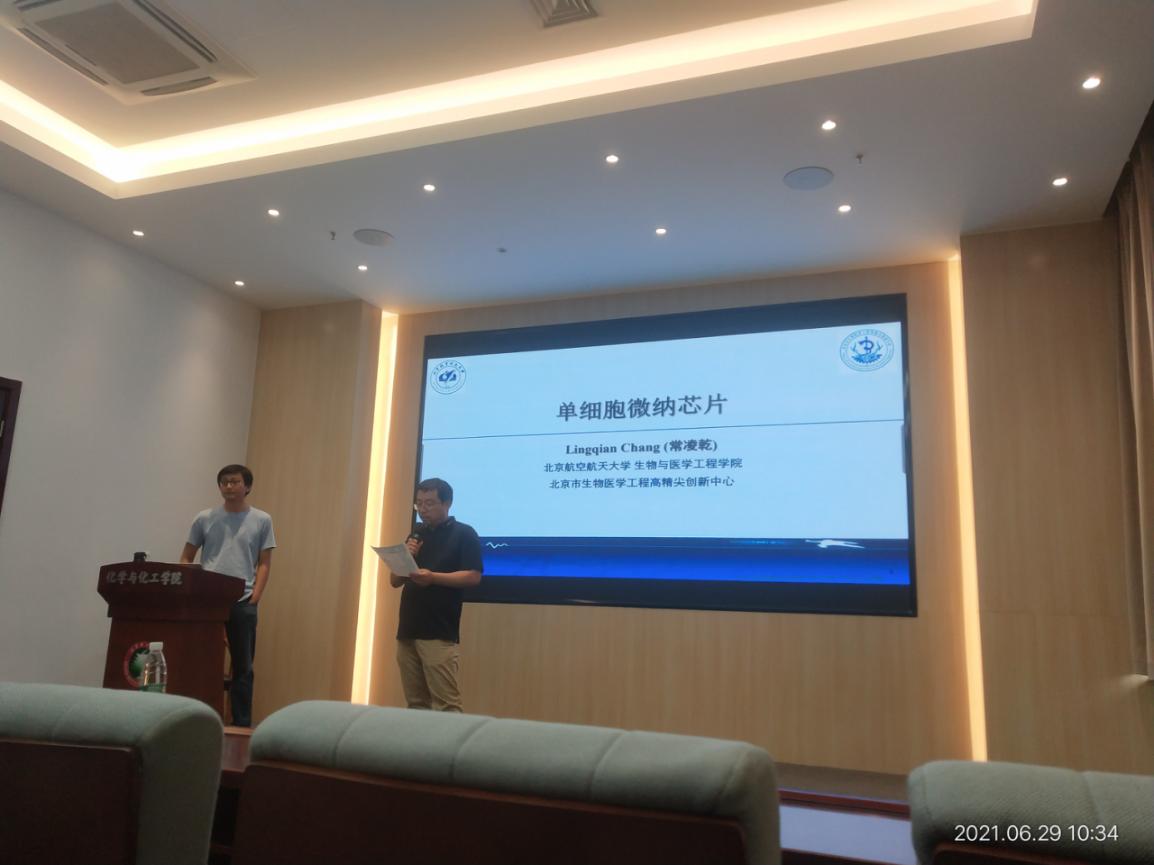 应花椒直播 邀请,北京航空航天大学生物与医学工程花椒直播 常凌乾教授于2021年 6月29日上午10:30在良乡校区工业生态楼118会议室,作了题为“单细胞微纳生物芯片”的精彩学术报告。报告由金旭辉老师主持,王蔚芝老师等20余名师生参加了此次报告会。