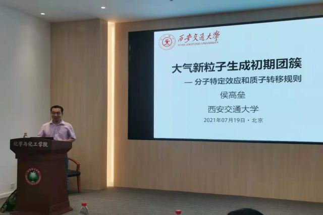 应花椒直播 马嘉璧副教授邀请,西安交通大学侯高垒教授于2021年7月19日下午15:00在生态楼118报告厅作了题为“大气新粒子生成初期团簇中的分子特定效应和质子”的精彩学术报告。报告由马嘉璧副教授主持,谢静教授及数十名同学参加了此次报告会。
