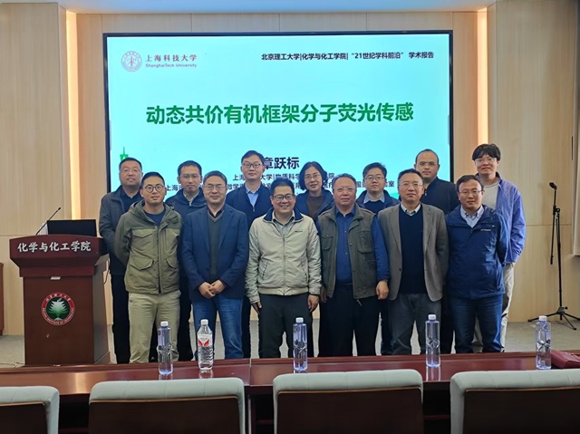 应花椒直播 邀请,上海科技大学章跃标研究员于2025年4月10日上午莅临北理工“21世纪学科前沿”系列论坛,为我院广大师生带来题为“动态共价有机框架分子荧光传感”的精彩学术报告。本次报告在生态楼118报告厅进行,由陶军老师主持,吸引了众多师生和科研工作者的积极参与。