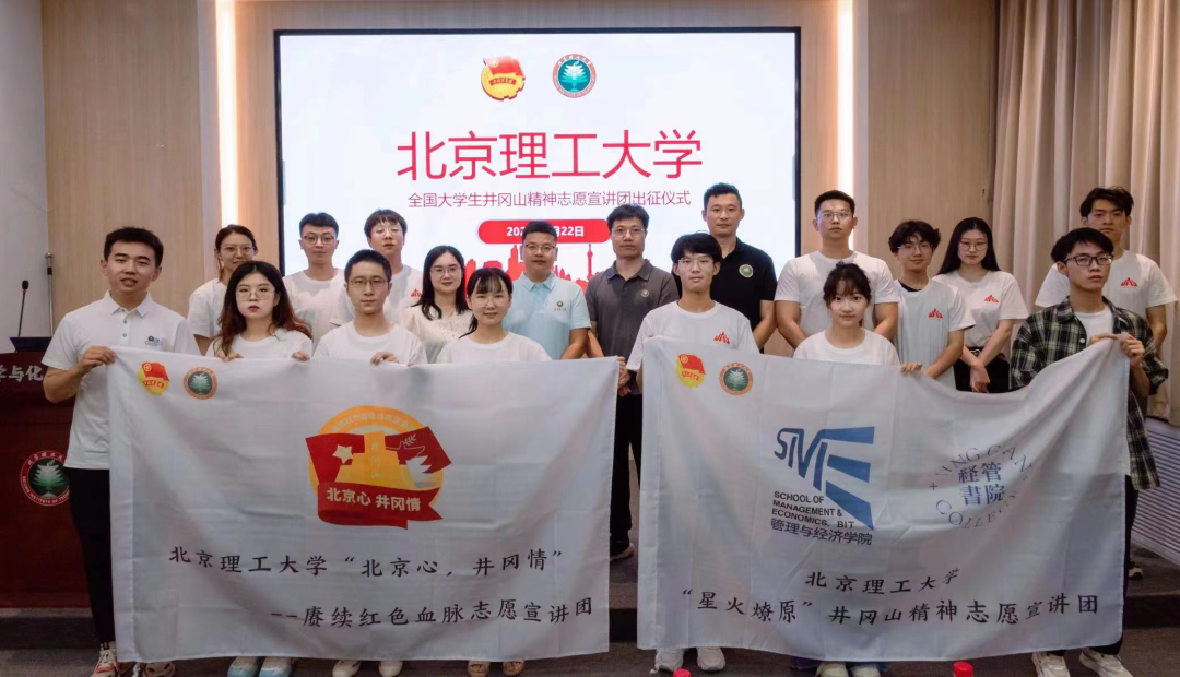 为深入开展学习贯彻习近平新时代中国特色社会主义思想主题教育,全面贯彻党的二十大精神,鼓舞新时代北理工青年体悟井冈山精神,传承“延安根、军工魂”红色基因,2023年6月22日,共青团花椒直播 委员会、共青团花椒直播 委员会与共青团花椒直播 管理与经济花椒直播 委员会联合举行了“花椒直播 井冈山精神志愿宣讲”出征仪式。