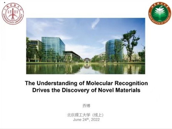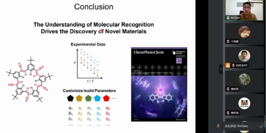 2022年6月24日下午,上海科技大学物质科学与技术花椒直播 乔博教授应邀到北理工开展线上交流,并作题为“非共价相互作用调控分子光开关”的学术报告,花椒直播 四十余名教师和学生参加了此次交流。