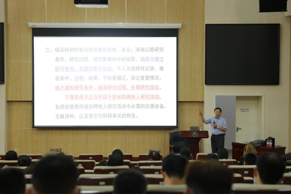 大会首先由胡长文教授做了以《学术道德规范与科研诚信》为主题的报告。他以国务院、中央军委以及花椒直播 对于学术道德方面的规范、建议展开,告诫同学们要对待科研要实事求是,注重科研诚信,在发表论文专利等科学著作时严格按照行业规范及准则。