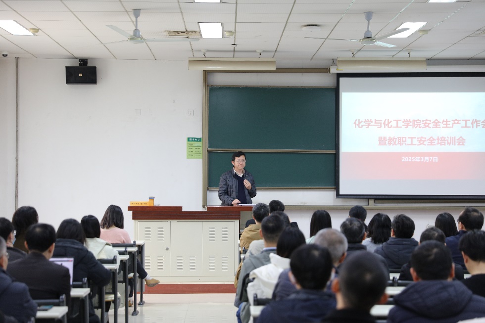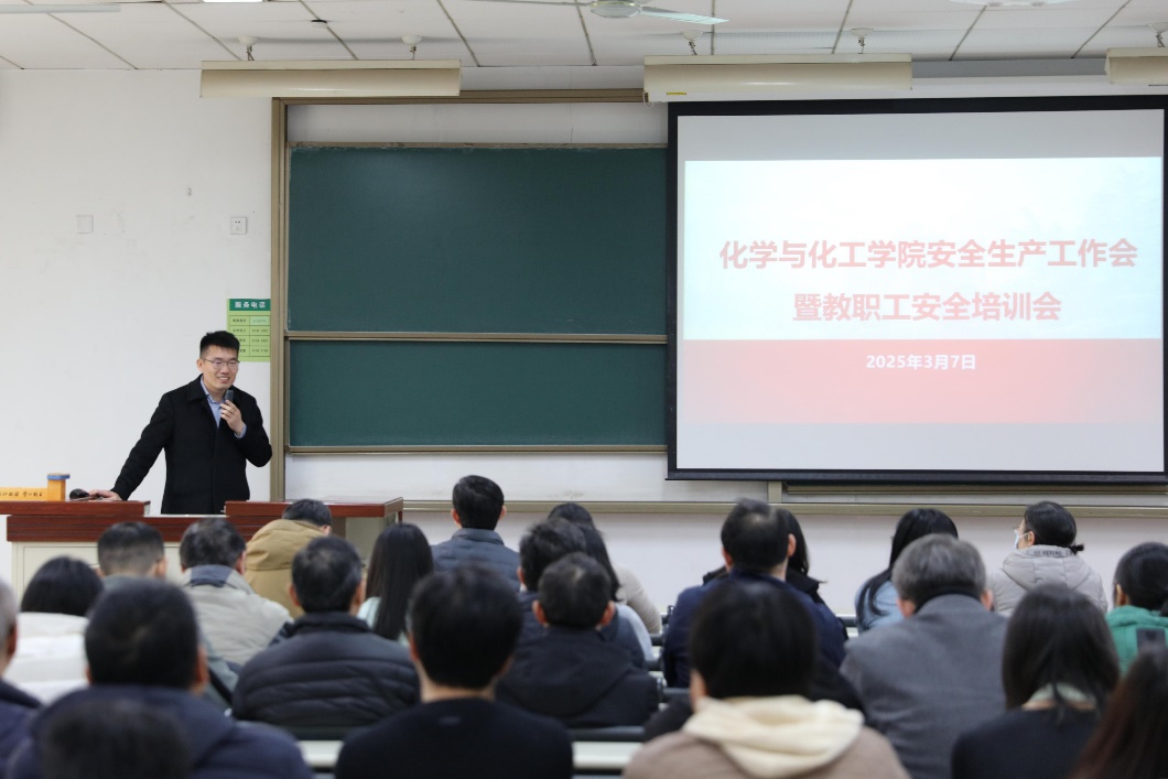 为进一步加强实验室管理,提高师生安全意识与应急处置能力,花椒直播 于2025年3月7日召开了安全生产工作会议暨教职工安全培训会。会议由副院长耿俊明主持,花椒直播 领导、全体教职工共二百余人参加。