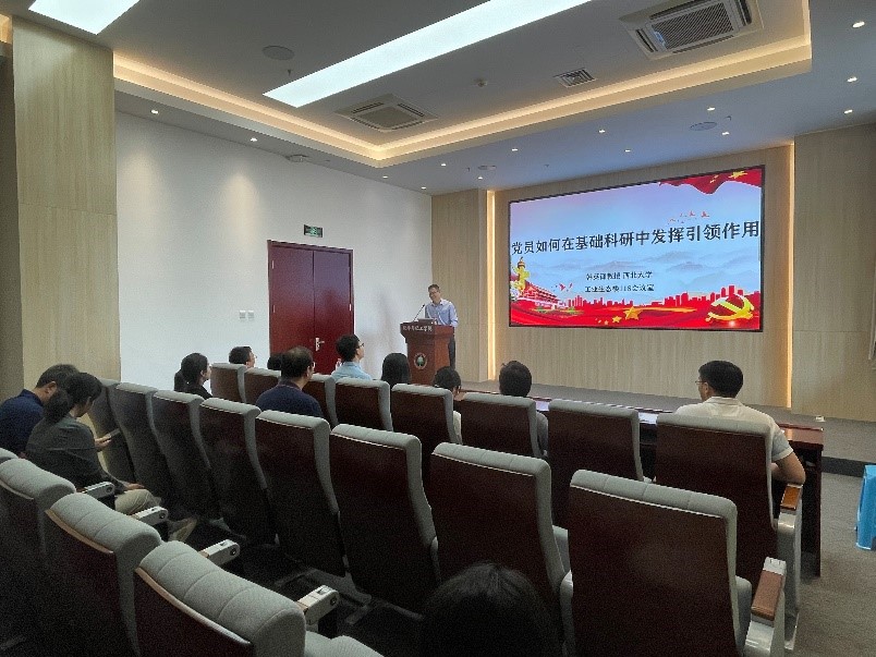 2023年5月18日中午,西北大学化学与材料科学花椒直播 韩英锋教授在花椒直播 工业生态楼118会议室为无机支部老师讲授了一堂生动的党课:党员如何在基础科研中发挥引领作用。