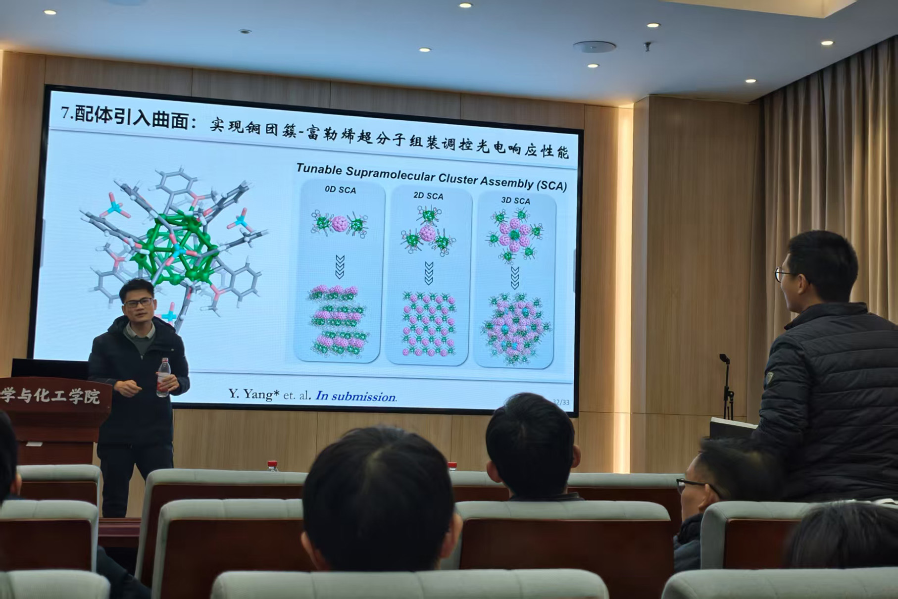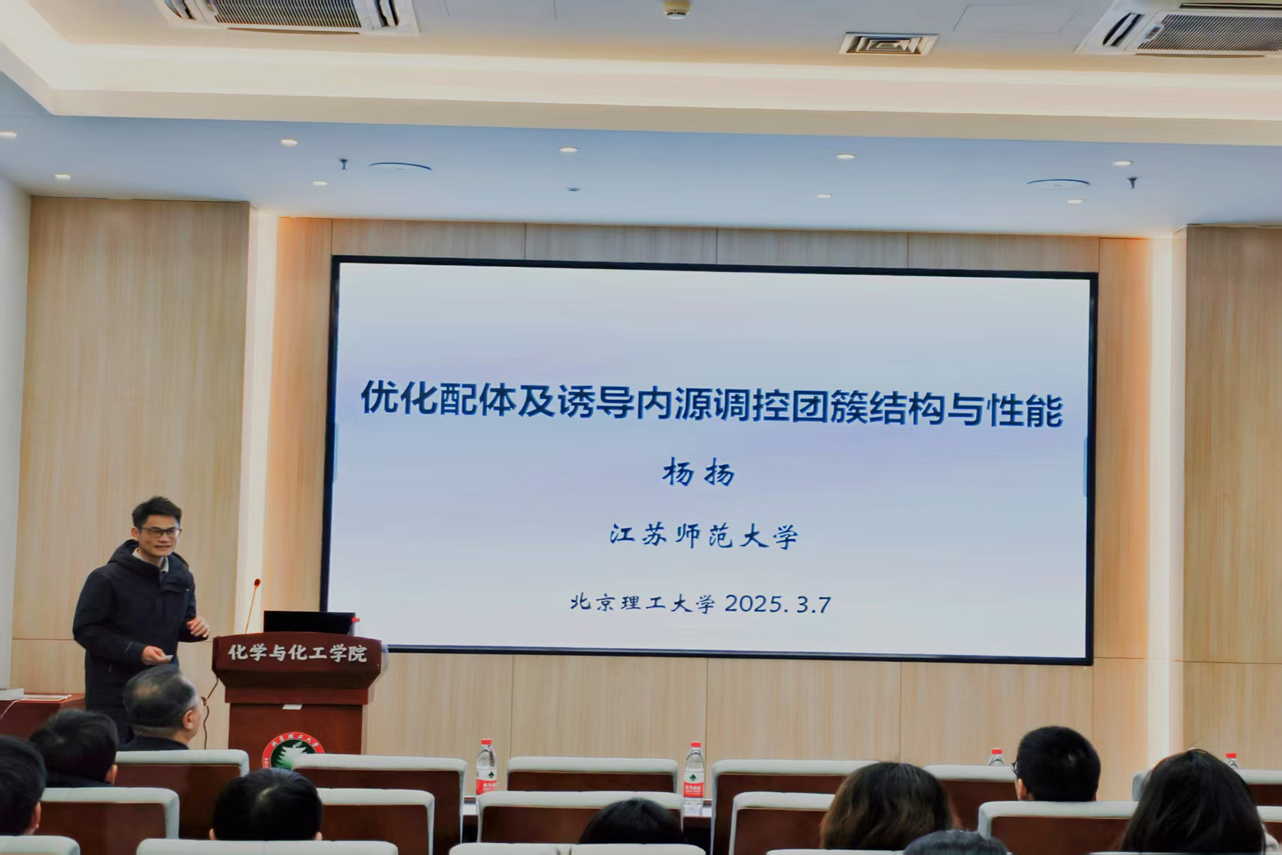 应花椒直播 邀请,江苏师范大学杨扬副教授于2025年3月7日16:00做客北理工“21世纪学科前沿”系列论坛,为我院广大师生带来题为“功能分子基多核结构可控构筑”的精彩学术报告。本次报告在生态楼118报告厅进行,由杨国昱老师主持,近五十名化院师生参加了报告。