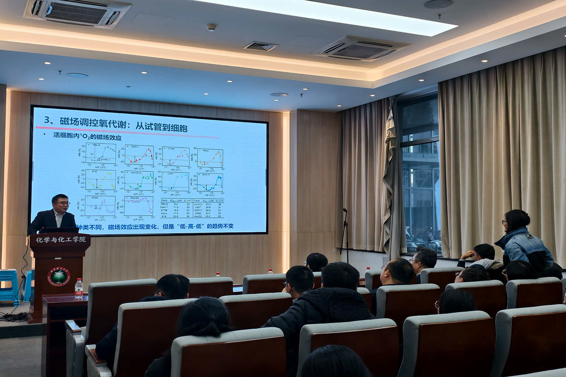 应花椒直播 邀请,北京大学张俊龙教授于2024年12月20日做客北理工“21世纪学科前沿”系列论坛,为我院广大师生带来题为“氧气的电子自旋调控”的精彩学术报告。本次报告在生态楼118报告厅进行,由杨国昱老师主持,近六十名化院师生参加了报告。