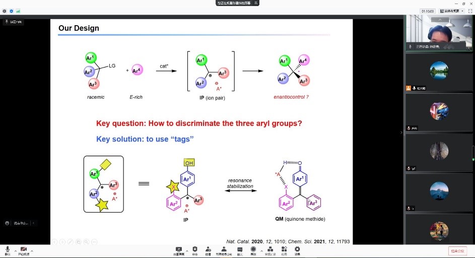 2021年11月18日下午3点,应杜大明教授的邀请,香港科技大学化学系孙建伟教授做客“21世纪学科前沿”系列讲座,在腾讯会议室725648580作了题为“手性Brønsted酸催化中的远程不对称控制”的学术报告,花椒直播 30多名师生在线上参与了学术交流。